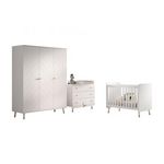 Cette chambre de bébé BILLY en 4 pièces se compose du lit de bébé BILLY blanc avec commode, plan à langer et armoire à 3 portes. Le motif graphique associé aux pieds dorés lui confère un caractère rétro-moderne. Ces articles sont fabriqués en MDF blanc de haute qualité laqué. Le sommier à lattes est inclus et réglable à 2 hauteurs différentes. .