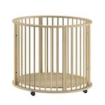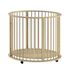 Parc de 90 cm Pour un confort et une praticité optimaux, le fond est réglable sur 3 hauteurs, ce qui le rend adapté à chaque étape de la croissance du bébé, du nouveau-né à l'enfant qui commence à ramper. Grâce aux roulettes sous les pieds, il est également facile à déplacer. Ces roulettes peuvent être retirées si désiré. Ce qui rend ce parc unique, c'est sa forme ronde. Sa couleur neutre s'intègre parfaitement dans tous les intérieurs.