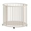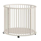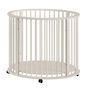 Parc de 90 cm Pour un confort et une praticité optimaux, le fond est réglable sur 3 hauteurs, ce qui le rend adapté à chaque étape de la croissance du bébé, du nouveau-né à l'enfant qui commence à ramper. Grâce aux roulettes sous les pieds, il est également facile à déplacer. Ces roulettes peuvent être retirées si désiré. Ce qui rend ce parc unique, c'est sa forme ronde. Sa couleur neutre s'intègre parfaitement dans tous les intérieurs.