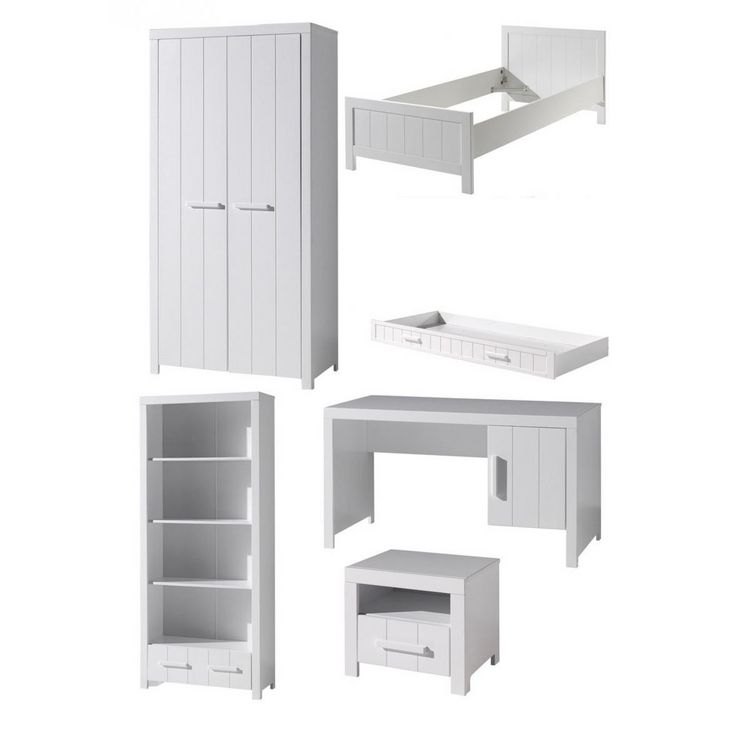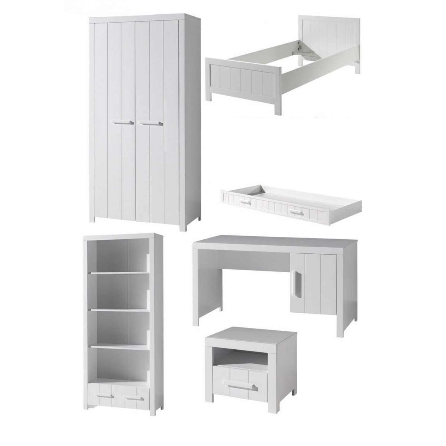 Vipack ERIK Lit simple + Lit gigogne + Armoire + Bureau + Table de Chevet + Bibliothèque