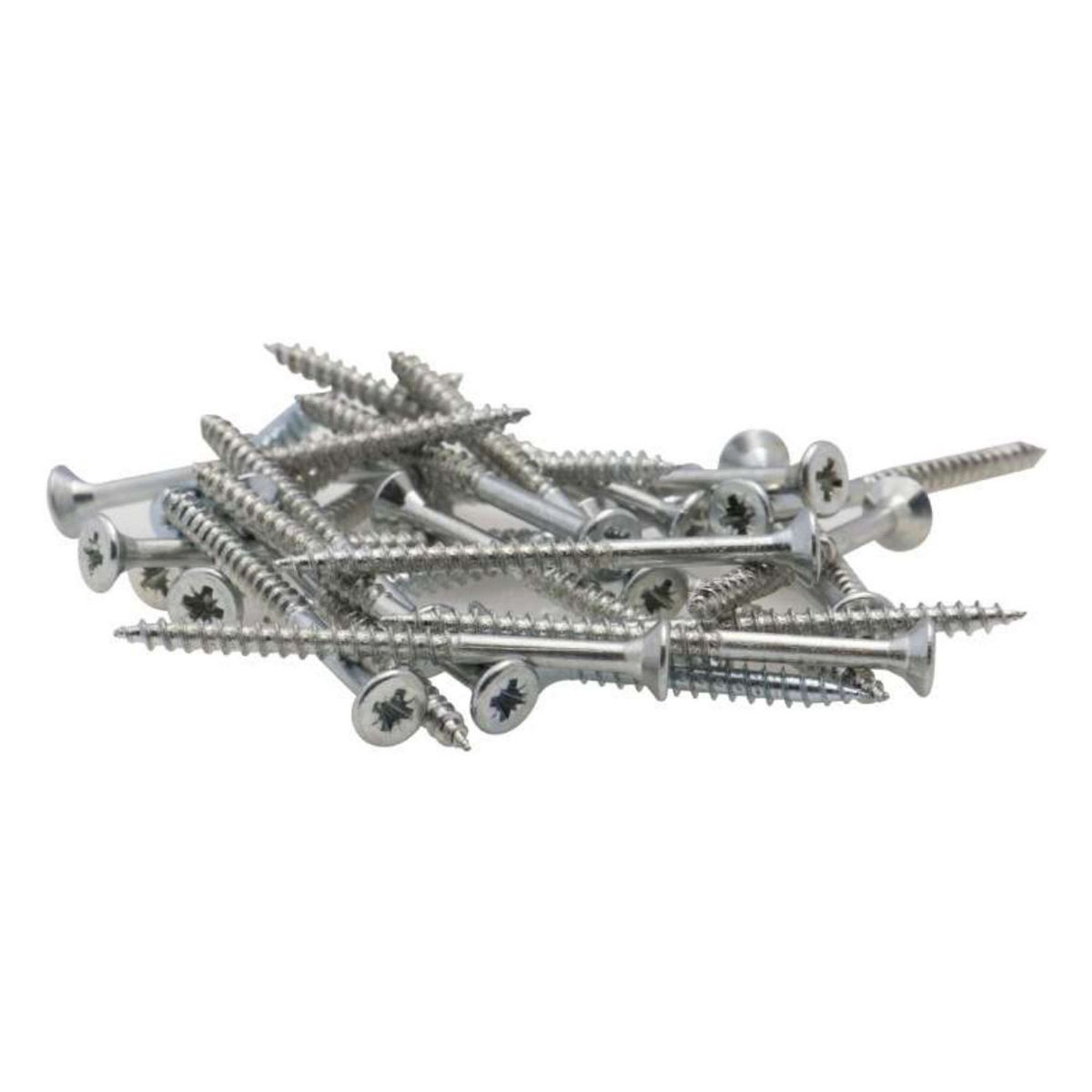 En savoir +Informations produit: Vis à bois tête fraisée PZ zinguée Matériau: acier poli Empreinte: cruciforme Tête: fraisée Filetage total Marque: Vissal Plusieurs tailles de vis et plusieurs conditionnements disponibles à la vente