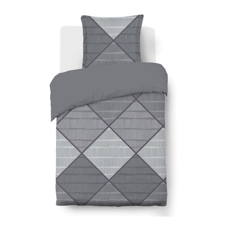 Parure Housse de couette - VISION - Harold - 140 x 200 cm - 1 taie assortie 65 x 65 cm - Gris - 100% coton