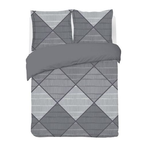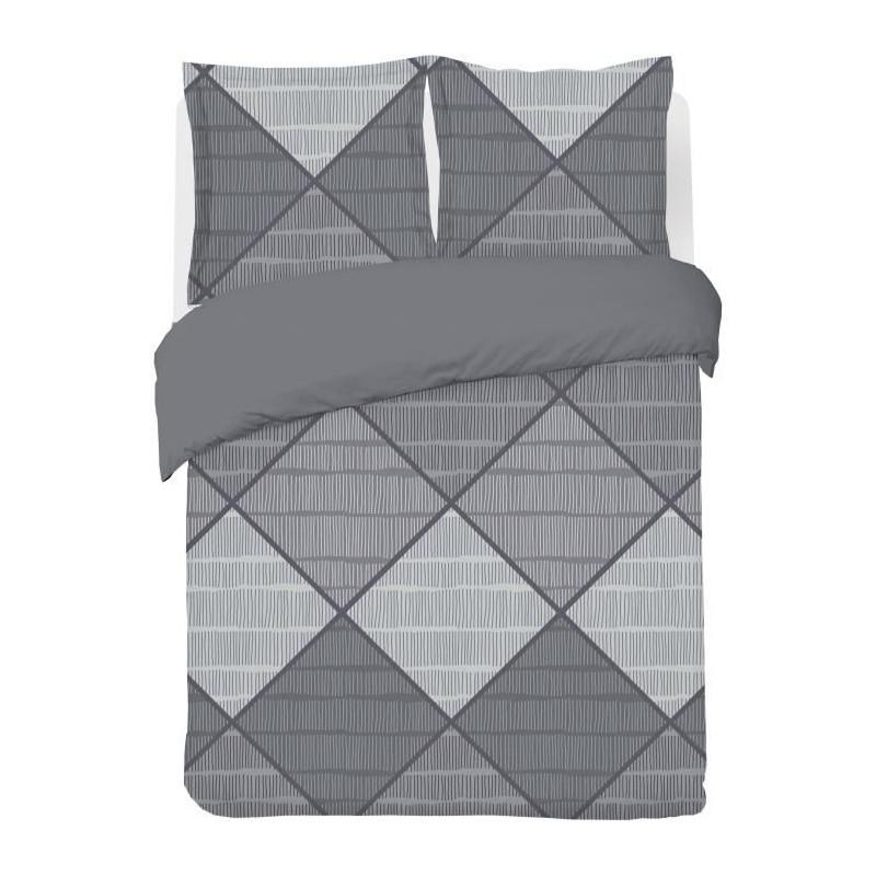 Parure Housse de couette - VISION - Harold - 240 x 220 cm - 2 taies assorties 65 x 65 cm - Gris - 100% coton