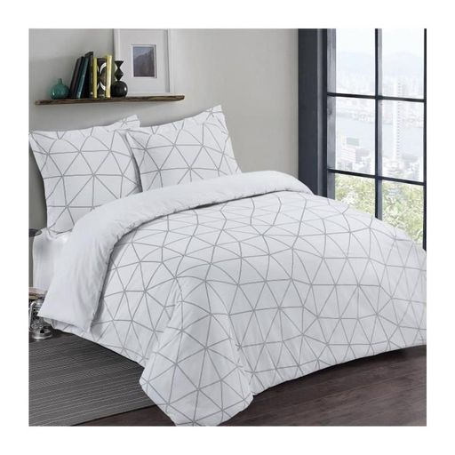 VISION Parure de couette Hugo - 100% coton - 1 housse de couette 200 x 200 cm + 2 taies doreiller 65 x 65 cm - Blanc
