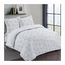 Parure de couette HUGO, comprenant : 1 housse de couette 200x200 cm + 2 taies d'oreillers 65x65 cm a volant plat. Matiere : 100% coton tissé serré 57 fils. Coloris : blanc. Certification : oeKOTEX. Parure a motifs fantaisie. Fermeture boutons. Lavable en machine a 40°C.