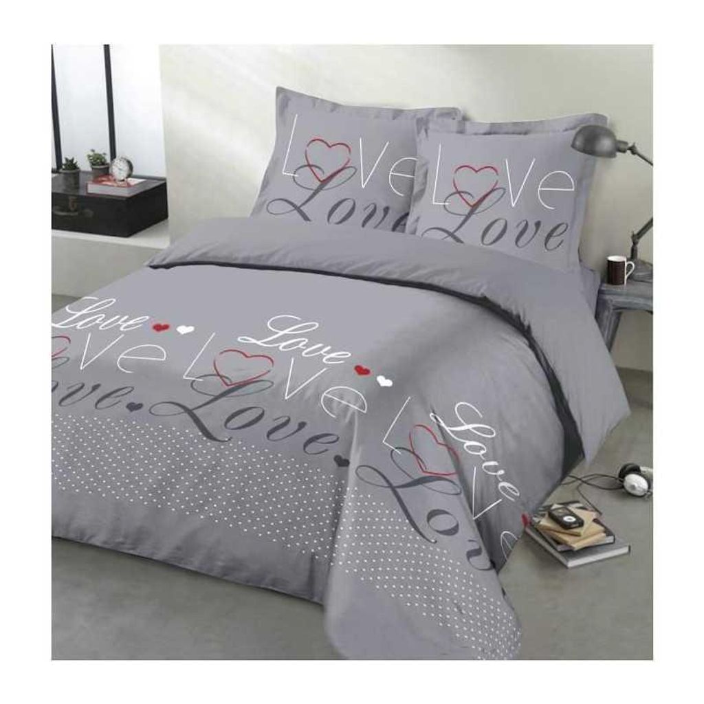 VISION Parure de couette Love - 100% coton - 1 housse de couette 240 x 220 cm + 2 taies d'oreiller 65 x 65 cm - Gris