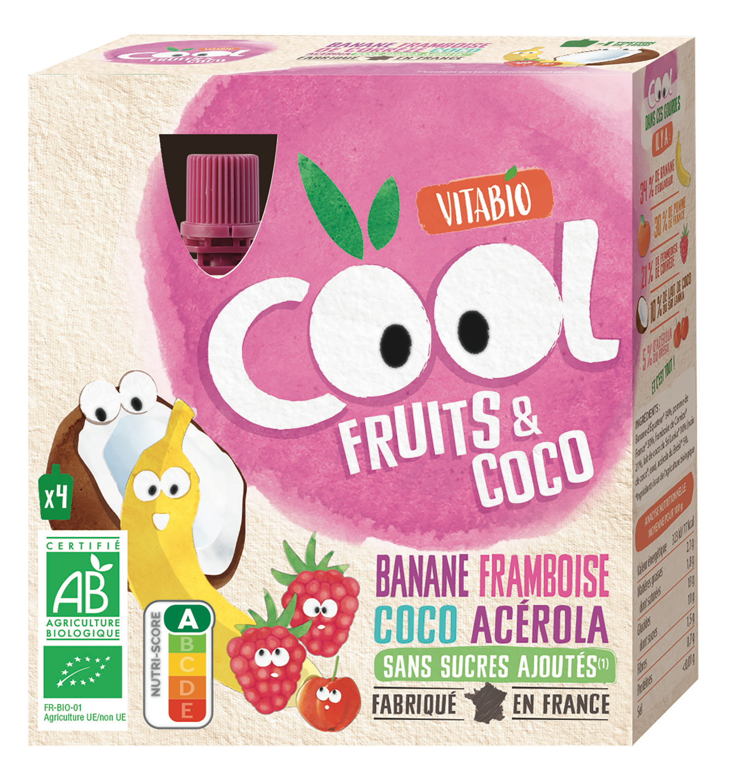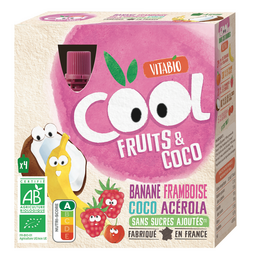 Spécialité de fruits et lait de coco bio Banane Pomme Framboise Coco Acérola