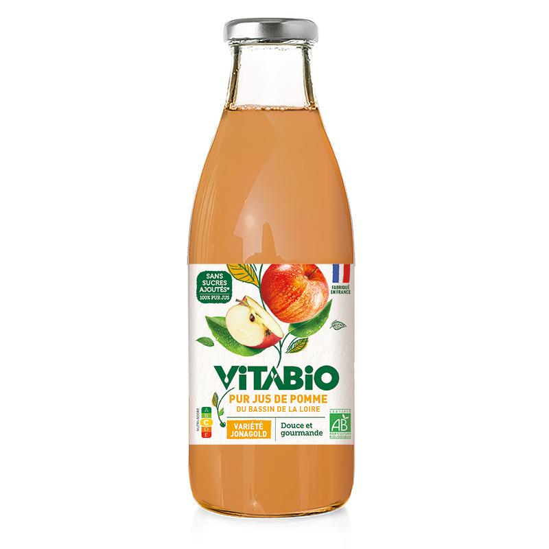 Vitabio révèle ce que la nature a de meilleur à nous offrir ! C'est au coeur des vergers du bassin de la Loire que sont cultivées les pommes Jonagold de ce pur jus doux et gourmand.