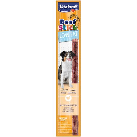 "Beef Stick Vitakraft séduit par son excellente qualité, son odeur irrésistible, son goût inimitable et sa teneur très élevée en viandes. A donner comme récompense, friandise ou petit encas!