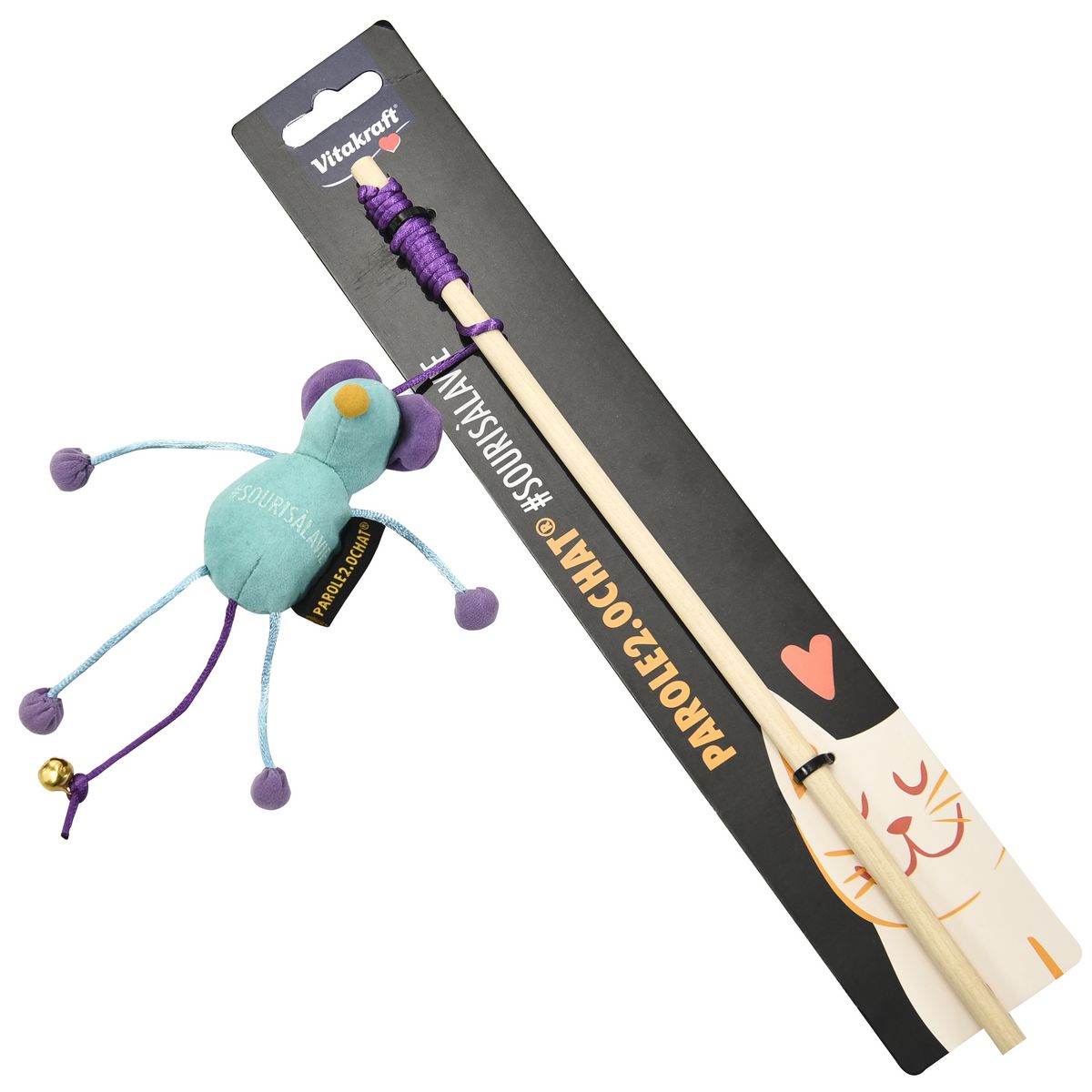 Jouet canne à pêche souris pour chat