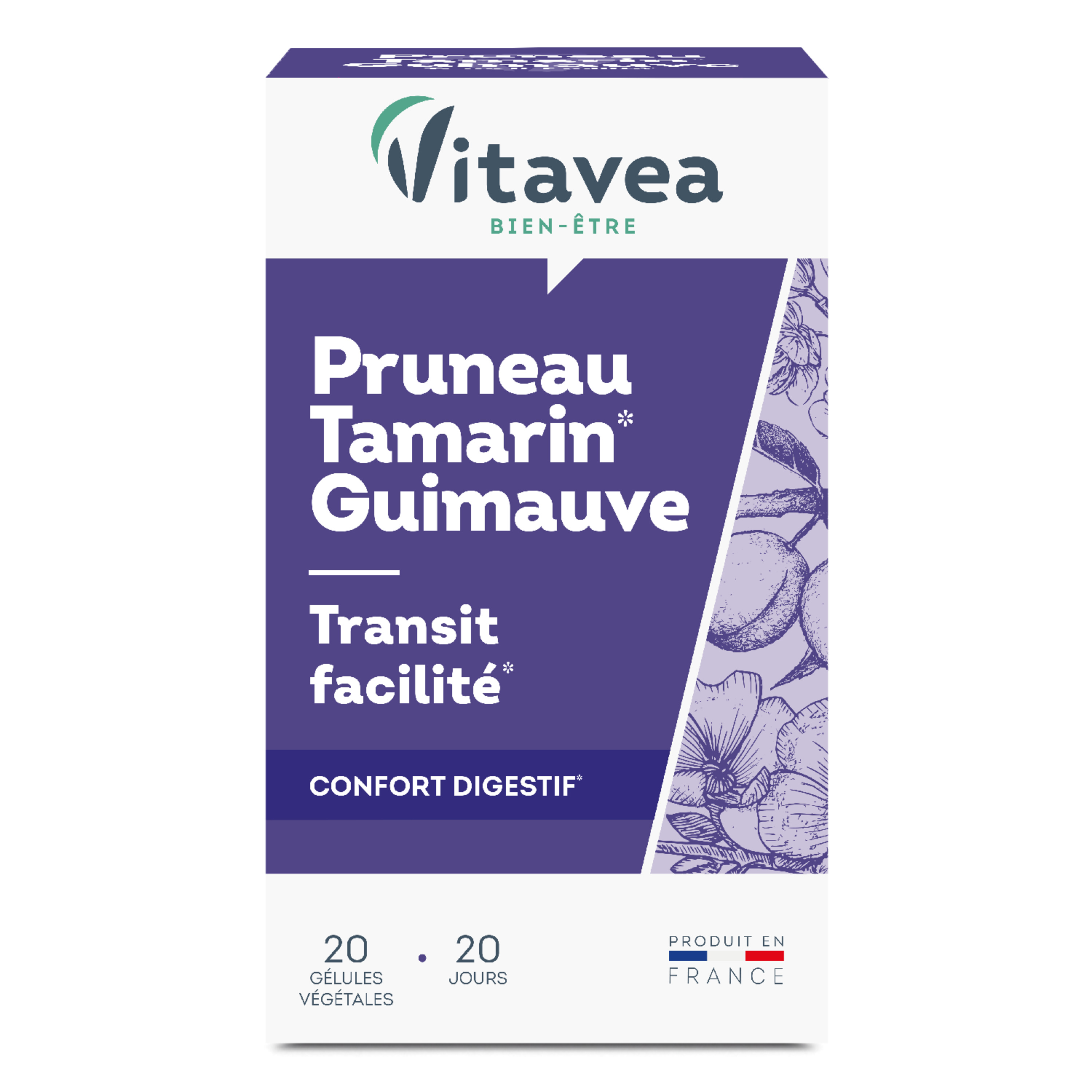 La formule Pruneau Tamarin Guimauve VITAVEA Bien-être est votre alliée pour favoriser un transit régulier.