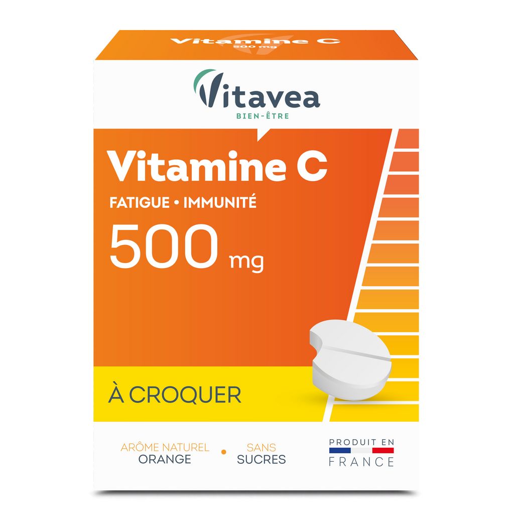 Vitamine C 500 à croquer VITAVEA Bien-être est un complément alimentaire qui contient un actif reconnu et plébiscité pour réduire la fatigue, retrouver de l'énergie au quotidien et favoriser la résistance de l'organisme : vitamine C. Les comprimés sont sécables et au bon goût d'orange.
