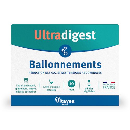 La formule ULTRADIGEST BALLONNEMENTS de VITAVEA SANTÉ est la réponse naturelle pour réduire les gaz et soutenir le confort gastro-intestinal.