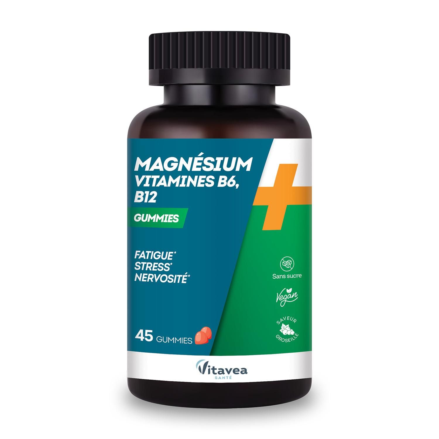 Magnésium Gummies VITAVEA Santé est un complément alimentaire, sa formule alliant magnésium, vitamine B6 et vitamine B12 aide à réduire la fatigue, à contribuer au bon fonctionnement du système nerveux et à favoriser la détente et la relaxation.