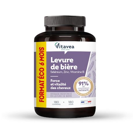 La formule LEVURE DE BIÈRE VITAVEA BIEN-ÊTRE est votre alliée pour la force et la vitalité de vos cheveux.