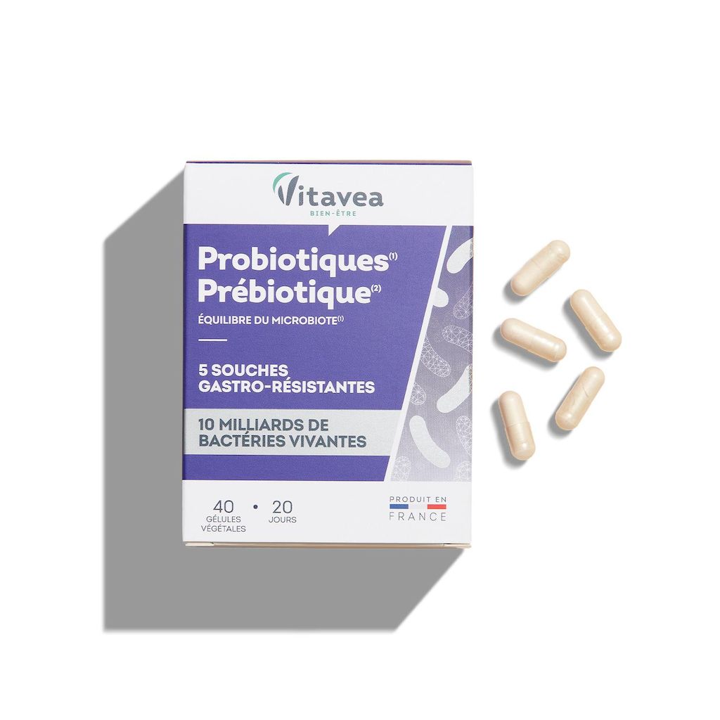 La formule Prébiotiques & Probiotiques VITAVEA Bien-être est votre alliée pour l'équilibre de votre microbiote.