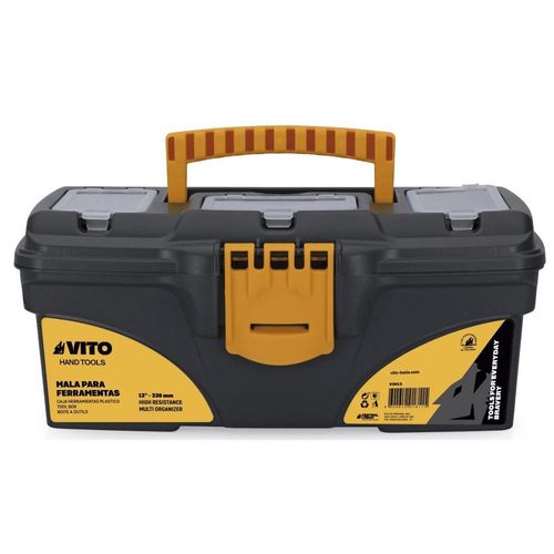 Caisse à outils VITO 13 – 32 x 16.5 x 13.6 cm. Solide et pratique, cette boîte compacte mais spacieuse permet de ranger et transporter facilement tous vos outils essentiels sans encombrer votre espace de travail.