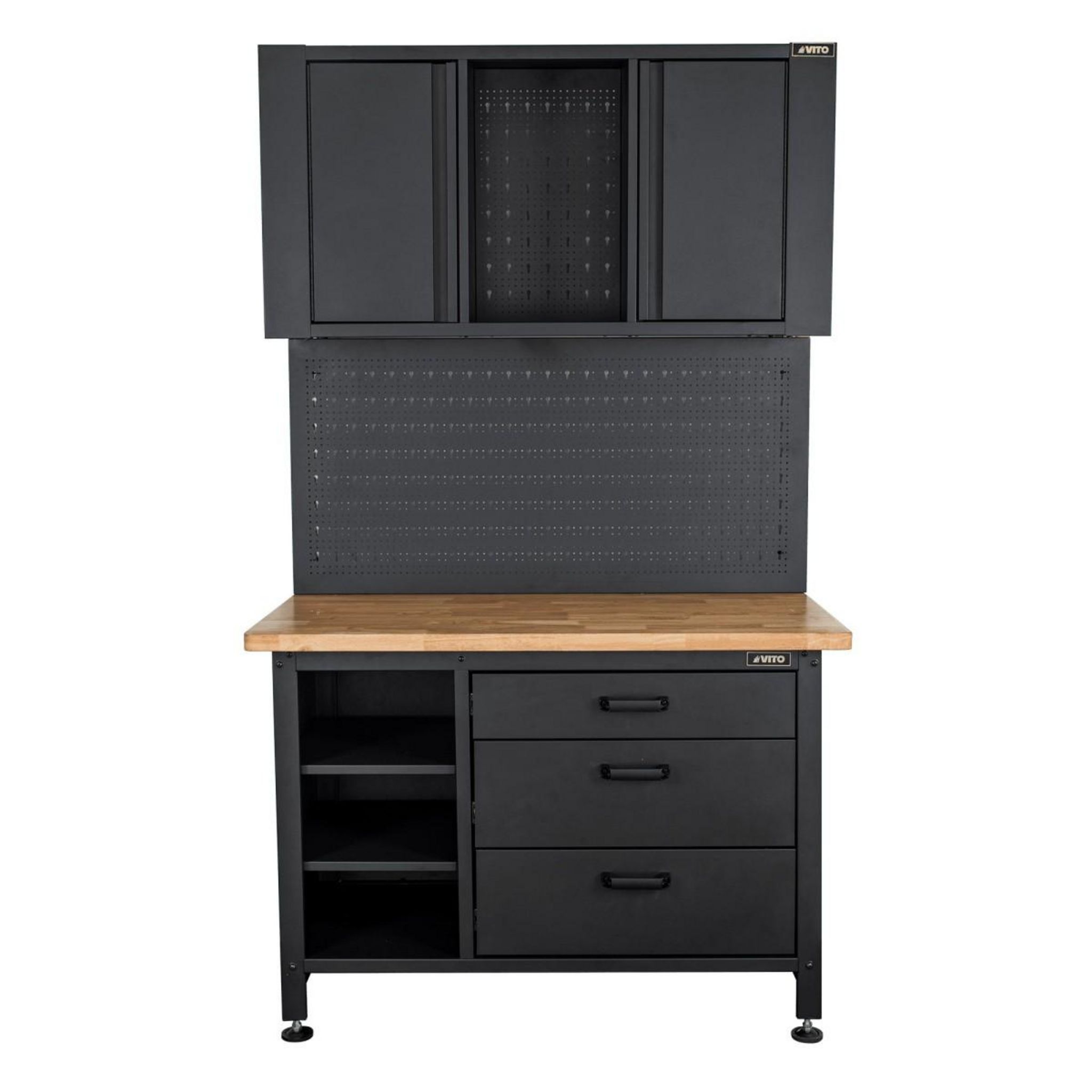 Etabli d'Atelier Garage avec Armoire de Rangement - Plan de travail Bois 2 Armoires 3 tiroirs Panneau perforé Charge 500kg VITO