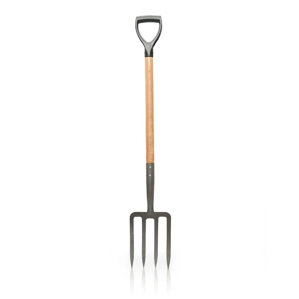 Le manche en bois offre une prise en main agréable et absorbe les chocs liés au travail du sol, réduisant la fatigue. La poignée en Y ergonomique assure un maintien ferme et confortable, vous permettant de transmettre efficacement la force pour soulever même les mottes de terre les plus lourdes.