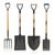 Pack 4 outils de jardin Acier Manche en Bois Fourche + Pelle carrée + Pelle ronde + Bêche VITO