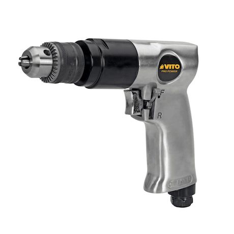 Perceuse pneumatique à air comprimé Foret Ø10 mm Max - 6.2 bar Entraînement 3/8 Conso :142 l/min Vitesse 1800 tr/min VITO