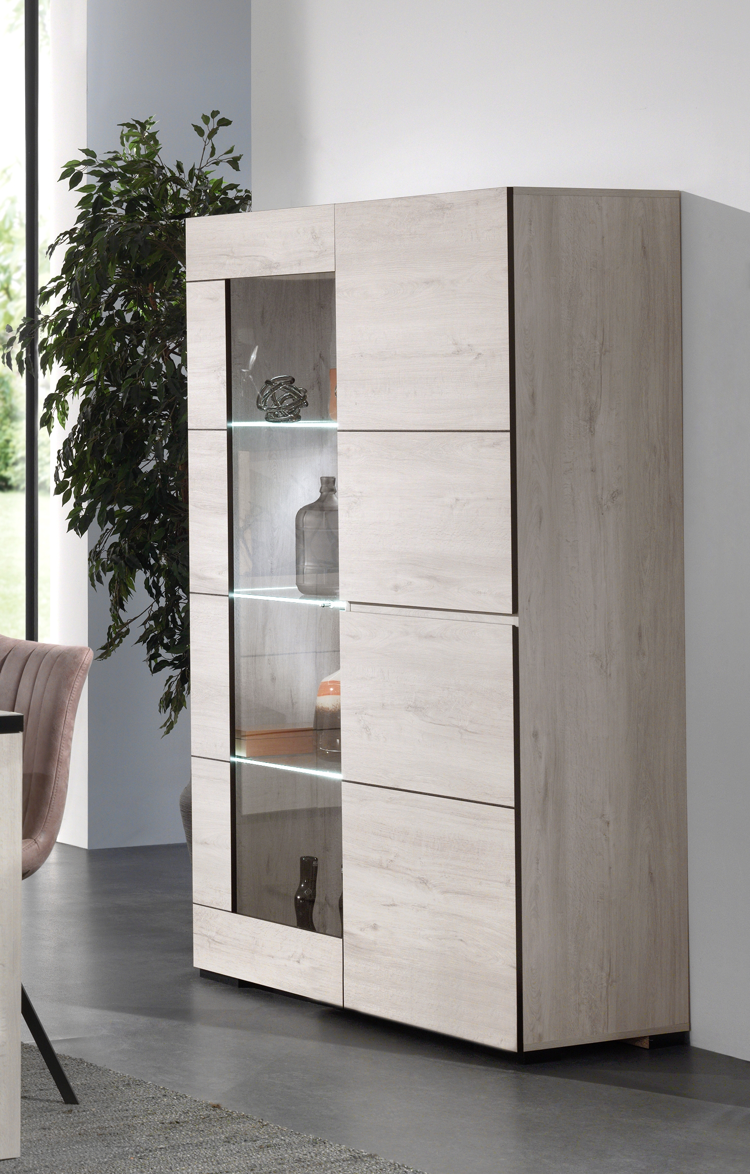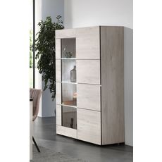 Laissez-vous séduire par la vitrine ALBA avec son design moderne et intemporel ! Pratique, elle est composée d'une grande porte vitrée ainsi que de deux petites portes battantes avec étagère intérieure et dispose d’un éclairage LED inclus. Fabrication européenne. A monter soi-même.