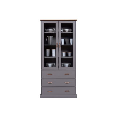La vitrine vaisselier LUNA, en bois massif avec une finition élégante en gris et sépia-marron, est l'ajout parfait pour tout intérieur souhaitant allier esthétique et fonctionnalité. Conçue pour s'intégrer harmonieusement dans un salon, une cuisine, ou une salle à manger, cette pièce de mobilier transforme et optimise l'espace, idéale pour les concepts de cuisine ouverte. Dotée de 2 portes vitrées et de 3 tiroirs, elle offre une solution de rangement élégante et pratique. Les 3 étagères internes créent 4 niches parfaites pour exposer votre vaisselle tout en la gardant à portée de main. Avec suffisamment d'espace pour organiser les objets du quotidien, ce vaisselier est non seulement un meuble de rangement mais aussi une pièce maîtresse qui ajoutera chaleur et caractère à votre espace de vie.