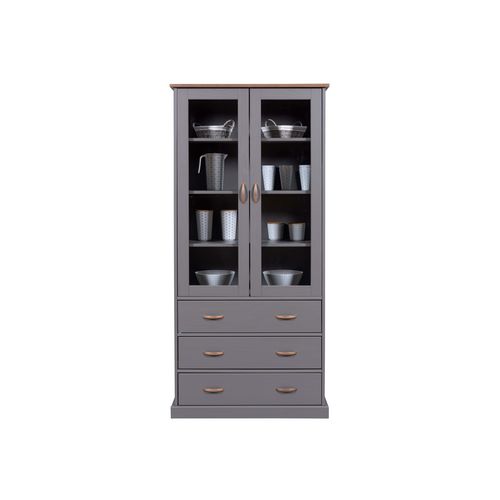 Vitrine vaisselier en bois massif 2 portes vitrées 3 tiroirs LUNA