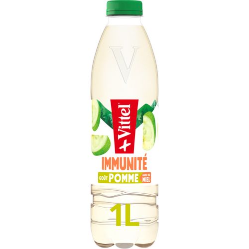 Boisson à l'eau minérale naturelle Vittel et au miel, enrichie en zinc et en vitamines B1, B3, B6, saveur pomme