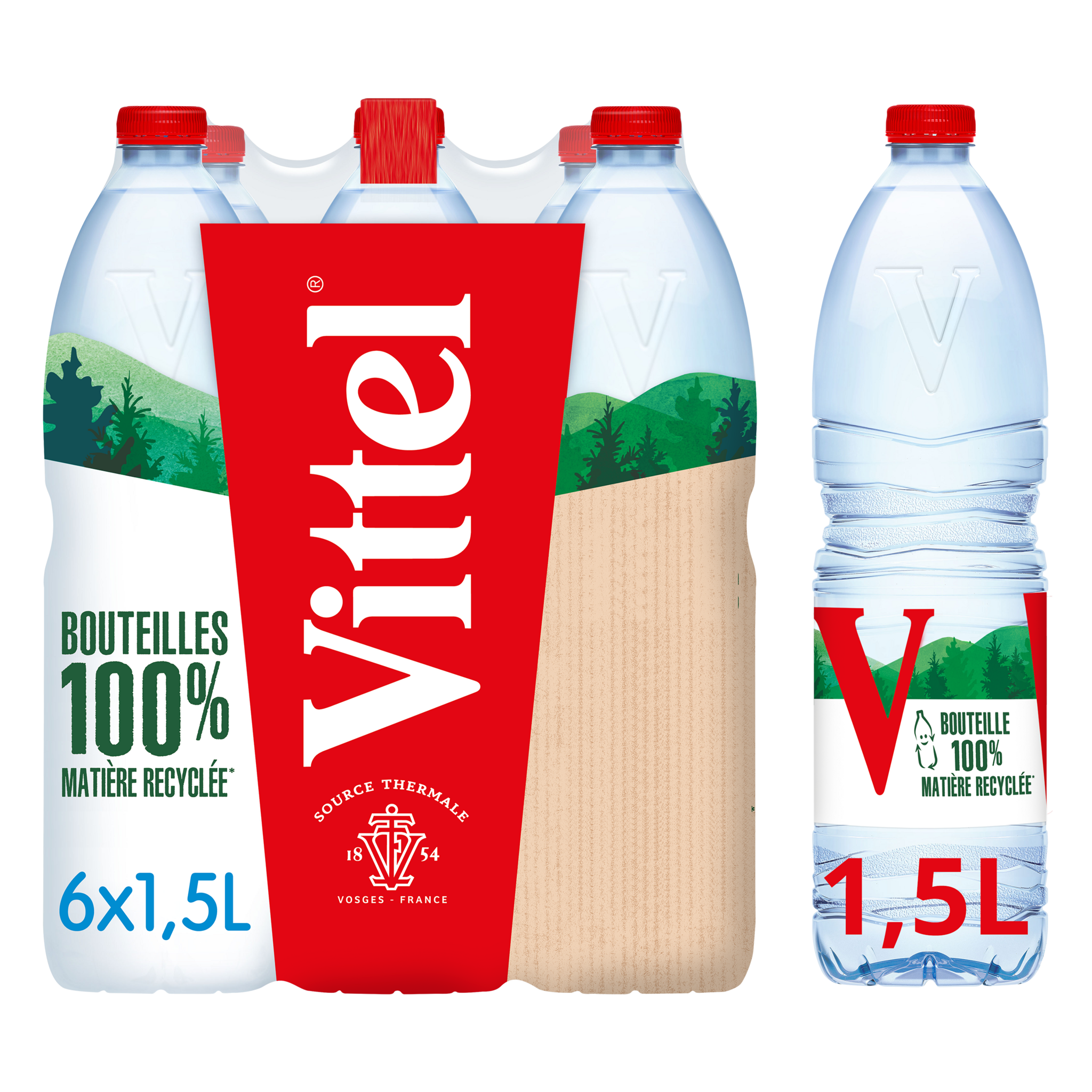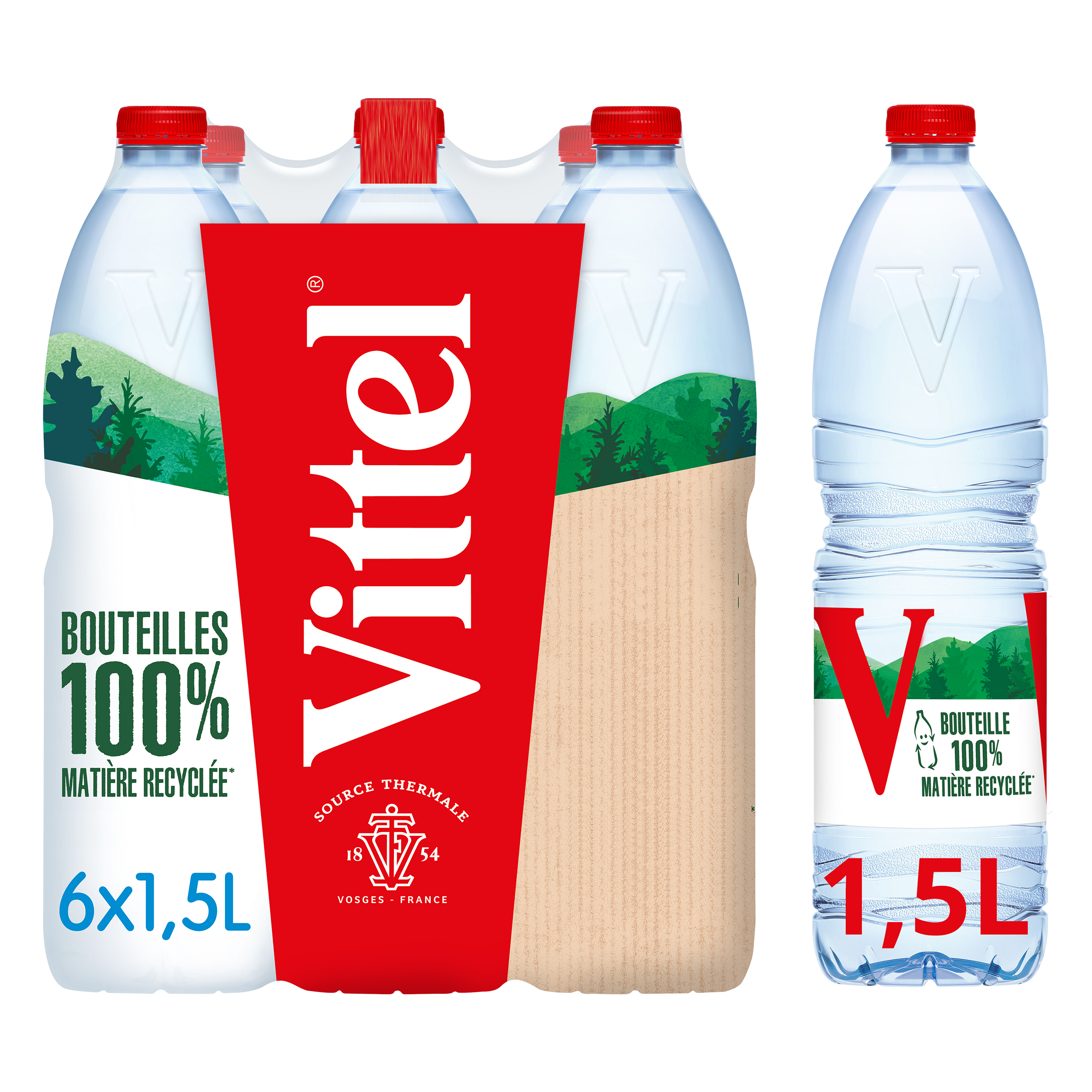 L'eau minérale naturelle VITTEL® tire sa minéralité unique de son parcours à travers le territoire vosgien. Source d'hydratation pour le corps et l'esprit à chaque gorgée, VITTEL® vous accompagne où que vous soyez, quand vous voulez, et vous invite à voir le verre à moitié plein. Au sport, au bureau, à table ou dans tous vos déplacements, son format 1,5L s'adapte à tous vos besoins. Avec VITTEL®, revitalisez-vous de la tête aux pieds. L'eau contribue au maintien d'une fonction physique et d'une fonction cognitive normales. Consommez au moins 2L d'eau par jour toutes sources confondues dans le cadre d'une alimentation variée, équilibrée et un mode de vie sain. Soif de + d'infos ? Rendez-vous sur vittel.fr.