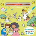Il suffit de tremper le pinceau dans l'eau et de le passer sur les zones blanches des pages. Les couleurs vont apparaître comme par magie ! En séchant les couleurs disparaissent à nouveau et l'enfant peut recommencer son activité encore et encore !