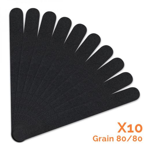 Lot de 10 limes à ongles droites premium – Grain 80/80 - Noir