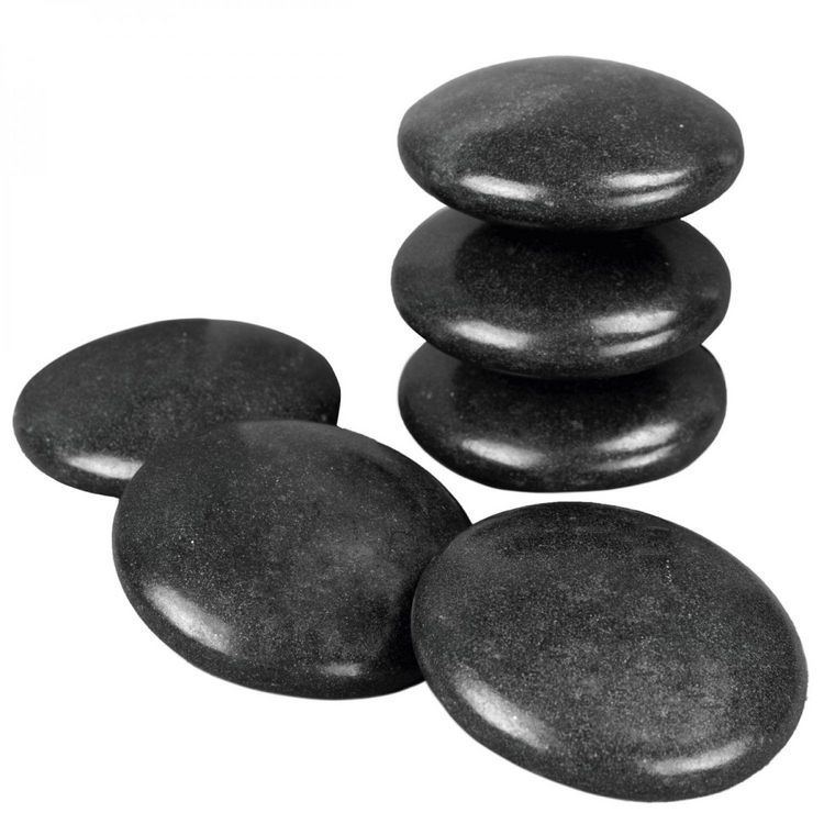 Lot de 6 pierres chaudes pour massage en basalte naturel poli - Ronde - M