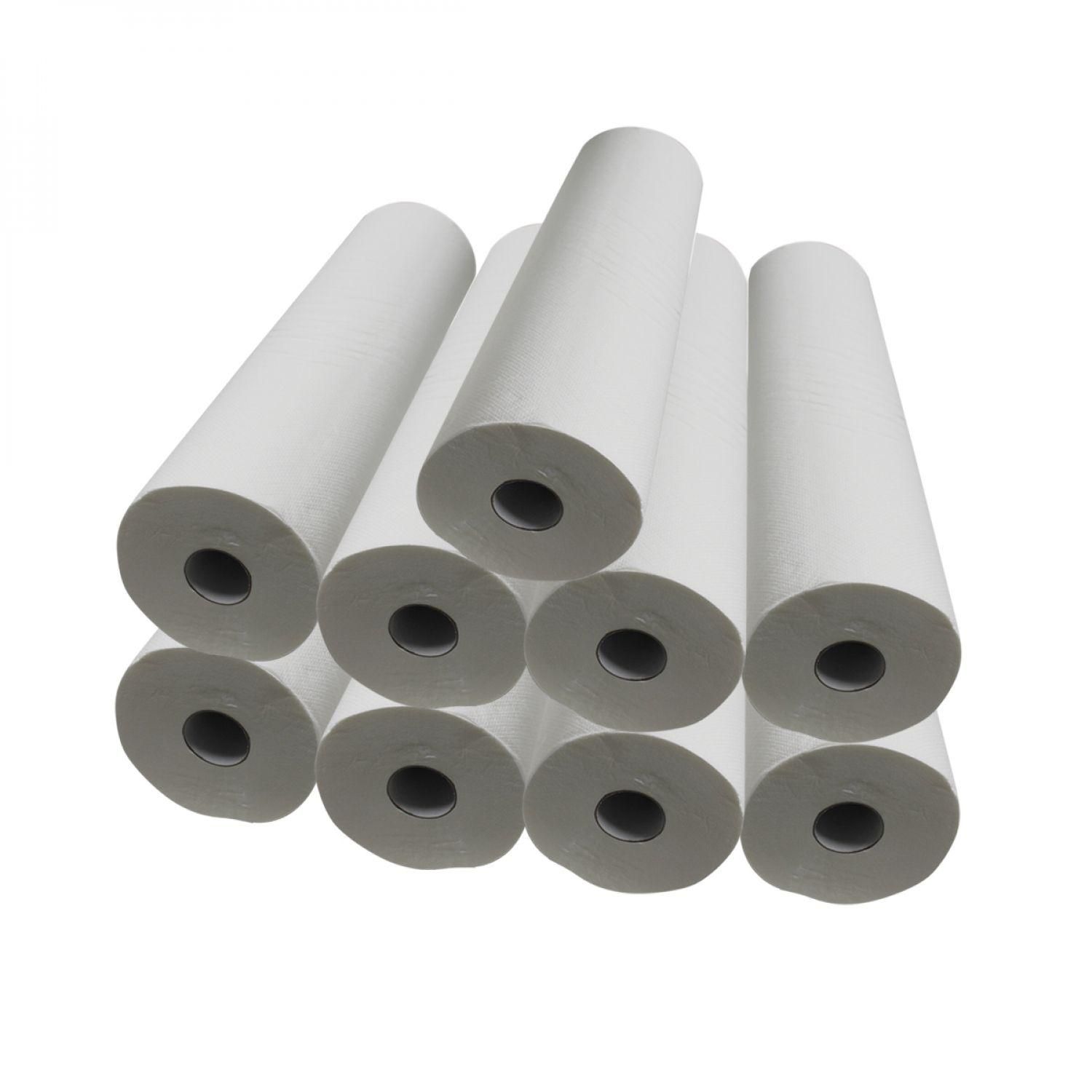Lot de 9 draps d'examen blanc 60cm x 50m - 34g/m2 double épaisseur aspect gaufré 100% pure ouate