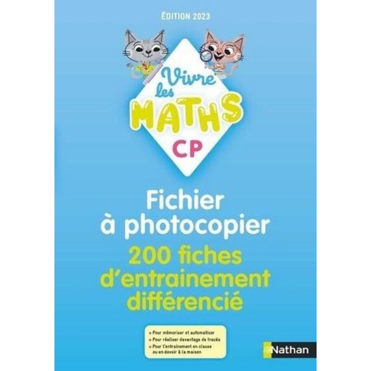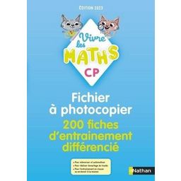 200 fiches d'entrainement différencié pour accompagner l'édition 2023 Vivre les Maths CP Le fichier à photocopier propose 200 fiches d'entrainement différencié avec 3 niveaux de diffculté . Les fiches proposent des exercices répétitifs pour : - mémoriser et automatiser : dizaines et unités, faits numériques, calculs avec des coloriages codés, calcul posé,... - réaliser davantage de tracés Pour l'entrainement en alte ou en devoir à la maison ! Ces fiches permettent à l'enseignant de diiférencier : - en donnant des fiches de niveaux 2 ou 3 aux élèves les plus rapides - en donnant des fiches de niveau 1 aux élèves ayant besoin de plus d'entrainement Format : Les fiches sont de format A5 et de format A4 pour la géométrie.