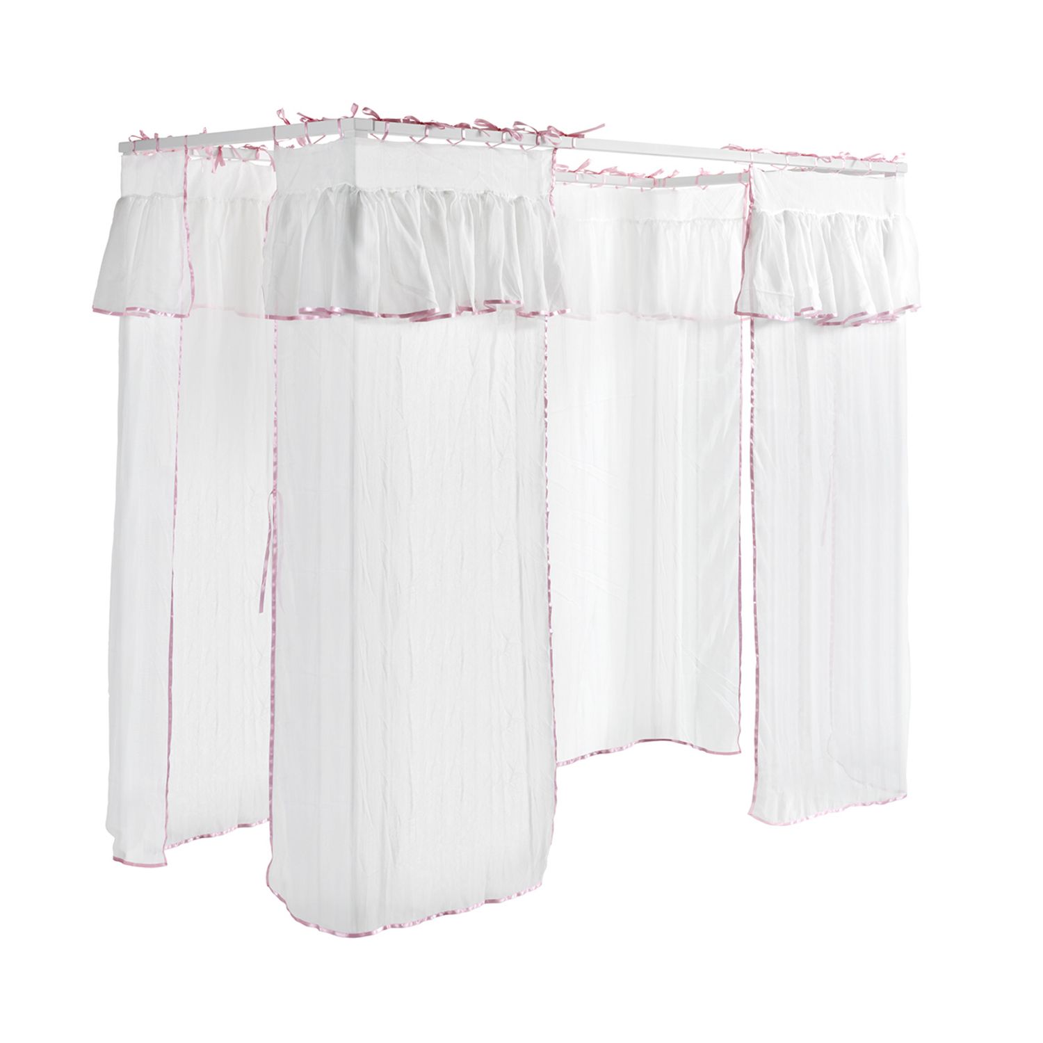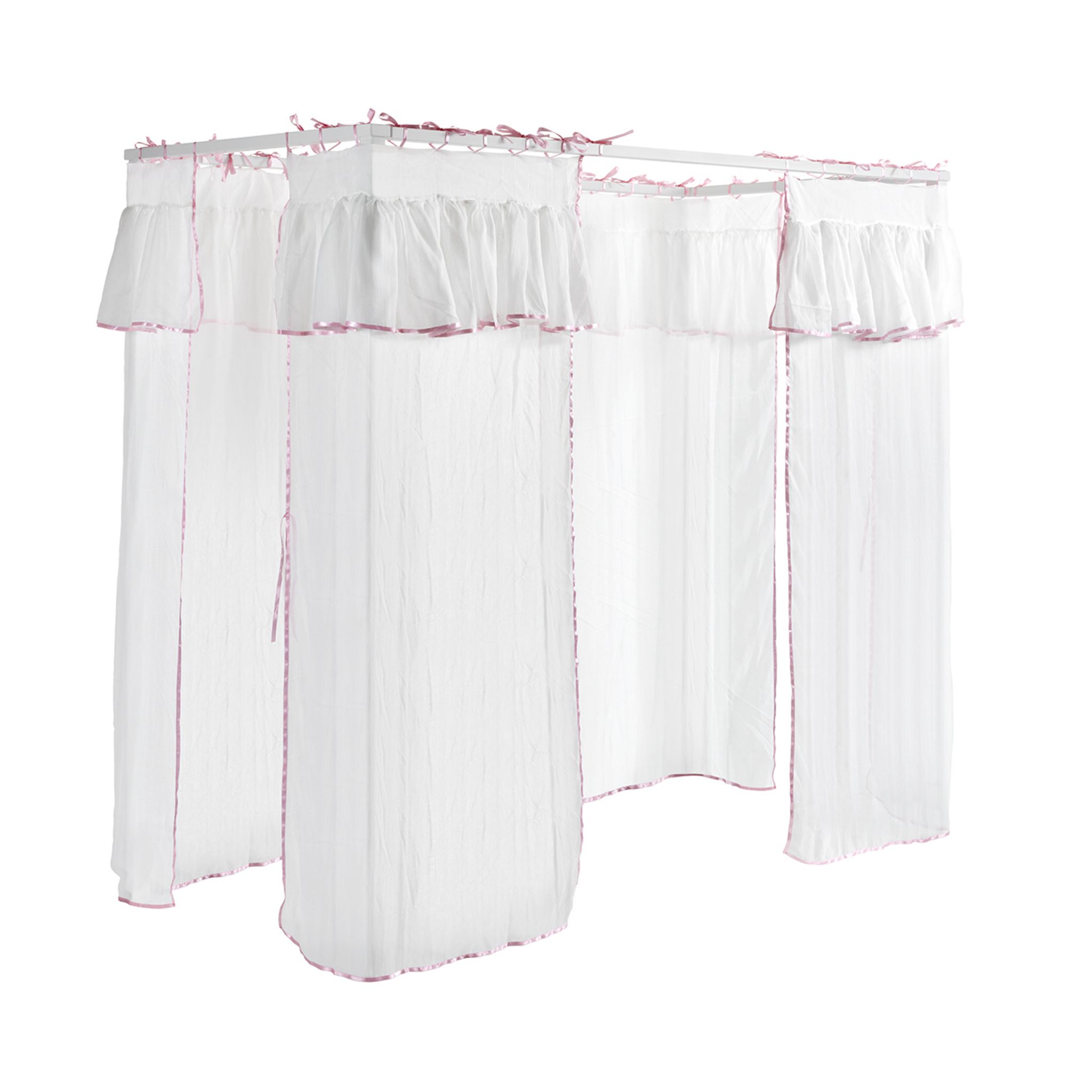 Un joli voilage composé de 4 rideaux pour un effet romantique garanti ! Cet ensemble textile est conçu pour le lit à baldaquin Maude et rendra la chambre de votre enfant douce et chaleureuse. Le léger contour rose apporte la touche girly à ce voile.