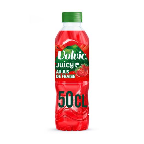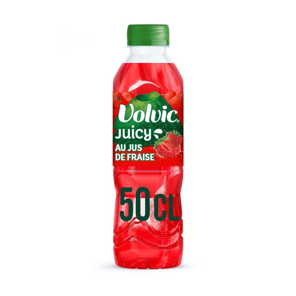 Volvic Juicy Fraise, c'est le goût intense de la fraise allié à l'eau minérale naturelle de Volvic. Envie d'un délicieux plaisir fruité ? Volvic Juicy Fraise, c'est toute la satisfaction du bon jus de fraise* associé à l'eau minérale naturelle Volvic. Volvic Juicy Fraise est sans additif, le tout dans une bouteille 100% en matière recyclée** Profitez de Volvic Juicy Fraise 50cL, à boire très frais ! *Boisson aromatisée à l'eau minérale naturelle Volvic, au jus de fruits à base de concentré. **Bouchon et étiquette exclus, mais nous y travaillons !