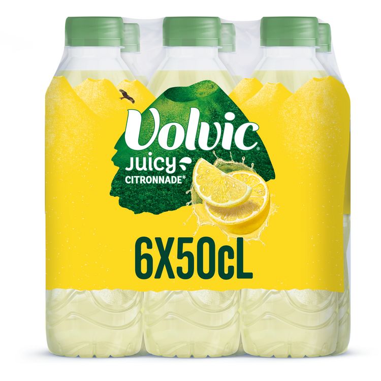 Volvic Juicy Citronnade, c'est tout le plaisir de la citronnade* associé à l'eau minérale naturelle Volvic. Volvic Juicy Citronnade est sans aucun additif, le tout dans une bouteille 100% en matière recyclée** et toujours recyclable ! Profitez de Volvic Juicy Citronnade 50cL, se boit très frais ! *Boisson aromatisée à l'eau minérale naturelle Volvic, au jus de fruits à base de concentré. **Bouchon et étiquette exclus, mais nous y travaillons !