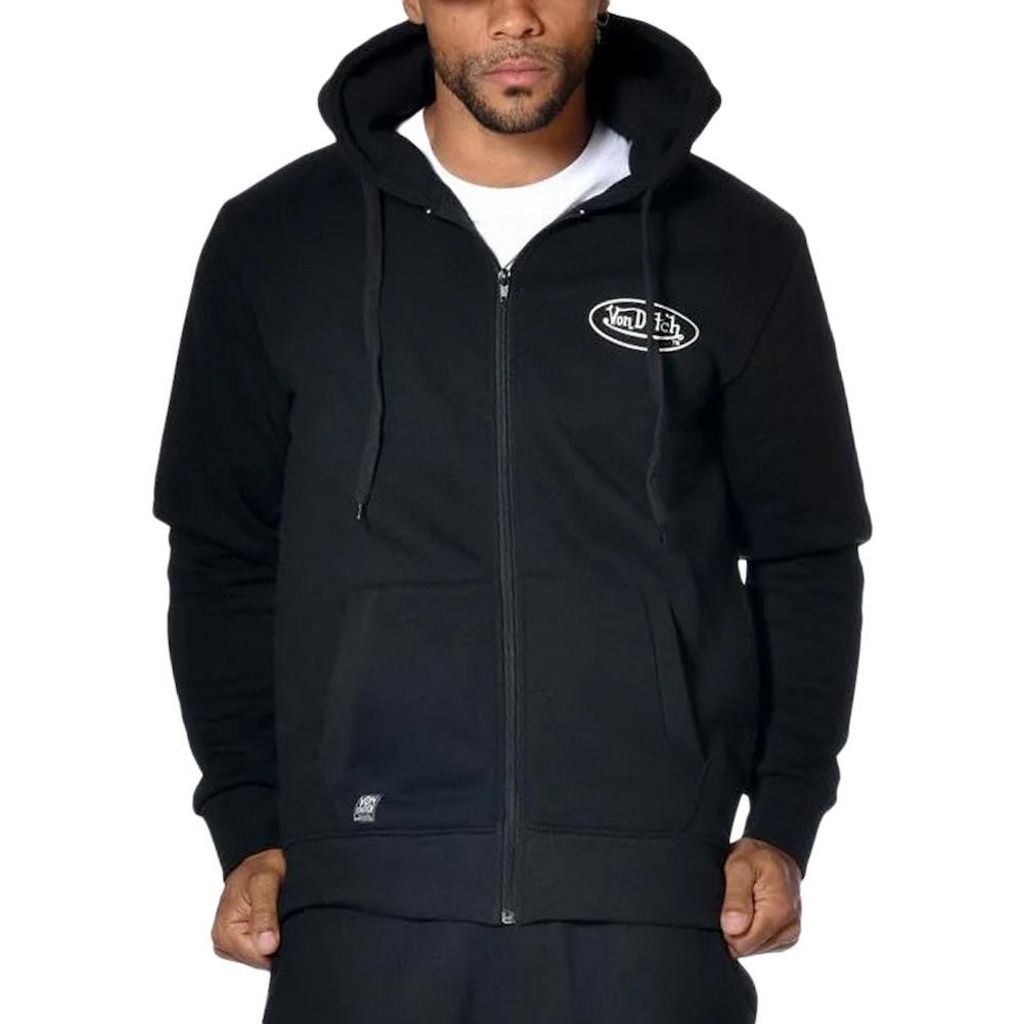 Optez pour ce sweat zippé Von Dutch à prix bas !Composition : 60% Coton 40% PolyesterManches longuesAvec capucheColoris : Noir