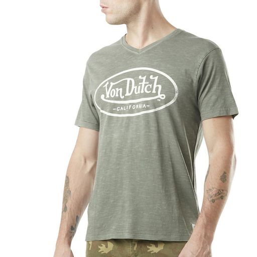 Optez pour un t-shirt de la marque Von Dutch !Coloris : Kaki Col rondManches courtesComposition : 100% cotonImprimé VD sur le devant