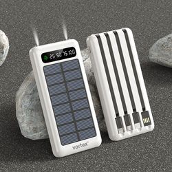 Optez pour une solution d'alimentation nomade et écologique avec cette batterie externe solaire de 10 000 mAh. Rechargez facilement vos smartphones, tablettes et autres appareils grâce à ses 4 câbles intégrés (USB-C, USB, Micro USB, Lightning). Sa lampe torche LED puissante vous sera utile dans de nombreuses situations. Son indicateur digital vous permet de suivre précisément le niveau de charge. Un allié indispensable pour vos aventures !