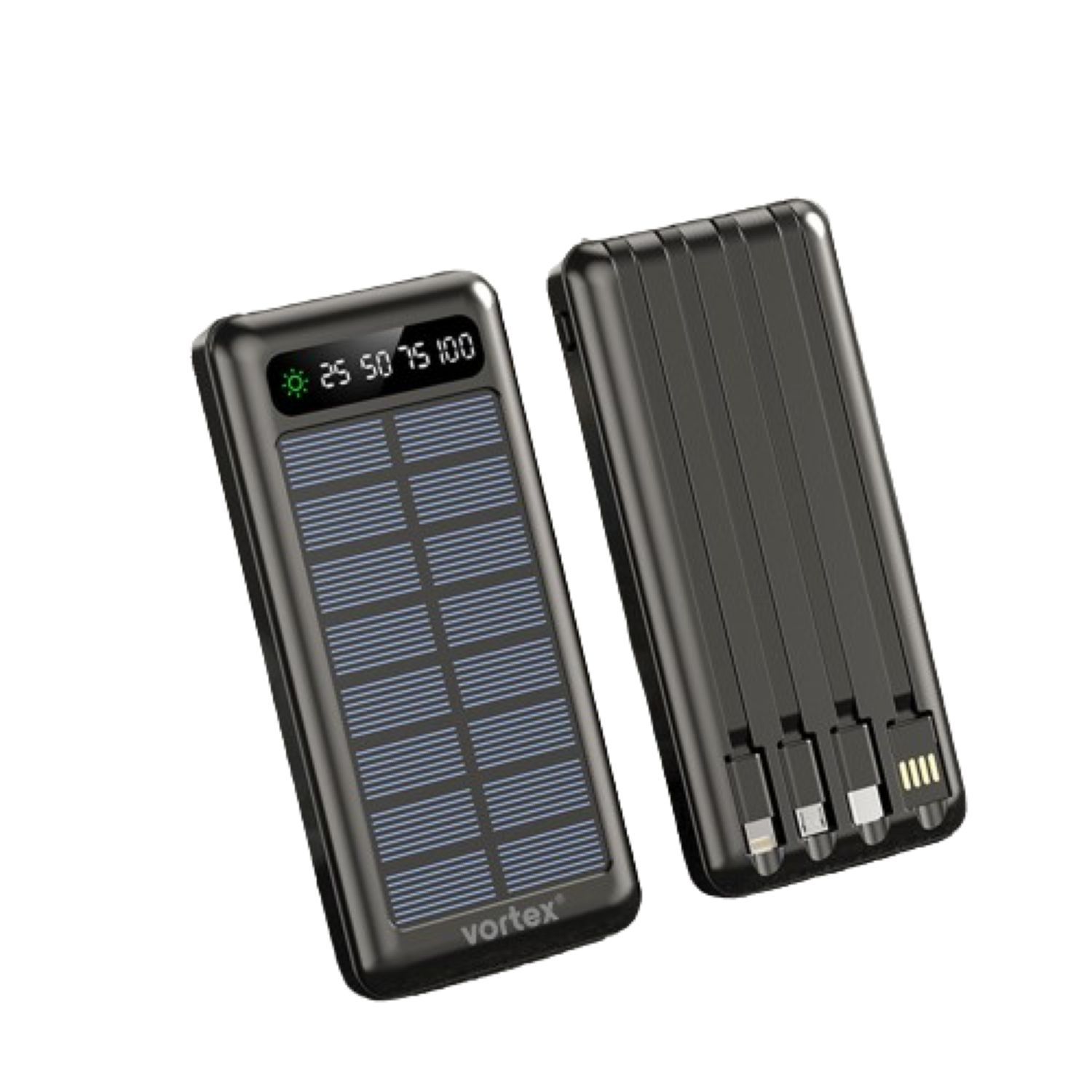 Batterie externe solaire 10 000 mAh fonction lampe torche - Noir