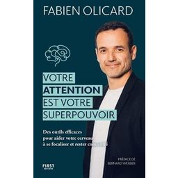 Connaissez-vous des personnes qui n'arrivent plus à regarder un ? lm à la télévision sans scroller, en même temps, sur leur téléphone ? En faites-vous partie ? DEVELOPPEZ VOTRE ATTENTION : Connaissez-vous des personnes qui n'arrivent plus à regarder un lm à la télévision sans scroller, en même temps, sur leur téléphone ? En faites-vous partie ? Sans cesse stimulés par les médias et les réseaux sociaux, nos cerveaux ont pris de mauvaises habitudes et ont toujours besoin de plus de stimulation. C'en est devenu une véritable addiction, que certains, non contents de monétiser notre intérêt, ont su manipuler à leur avantage. En tant que consommateur, acteur et expert de ces nouveaux médias, Fabien Olicard s'empare de cet enjeu de société. Dans ce livre de développement personnel, il vous propose de tester votre niveau d'attention et de concentration, et de prendre conscience de vos facultés. Ce livre de développement personnel vous donnera toutes les clés pour comprendre le fonctionnement de votre attention, ainsi que des outils simples pour reprendre le pouvoir dessus. PRENEZ CONSCIENCE DE VOS FACULTES : L'attention humaine s'est globalement dégradée au cours des dernières décennies. Notre cerveau réclame toujours plus de stimuli, alimentant ainsi une véritable dépendance. Un problème préoccupant quand on considère que l'attention est la clé de nombreuses compétences telles que la motivation, la mémoire et la réflexion. Dans ce livre de développement personnel avec une préface de l'écrivain Bernard Werber, Votre attention est votre superpouvoir, Fabien Olicard vous explique comment apprivoiser à nouveau votre pleine faculté d'attention. Plongez dans ce voyage fascinant et reprenez les rênes de votre concentration ! FABIEN OLICARD, LA STAR DES MENTALISTES : Fabien Olicard est mentaliste, entrepreneur, auteur et créatif. Curieux, passionné et pédagogue, il est l'un des rares mentalistes à dévoiler ses techniques de travail et de concentration. Suivi chaque jour par plus de 750 000 abonnés sur YouTube, il contribue à populariser le mentalisme auprès du grand public, pour notre plus grand plaisir !