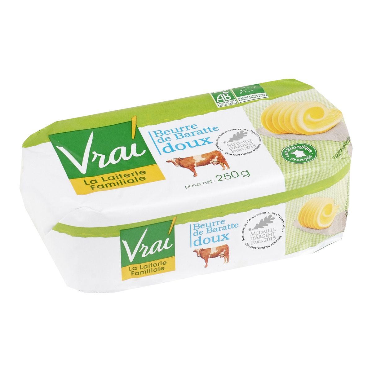 Vrai Beurre de baratte doux 250g LAIT BIOLOGIQUE FRANCAIS, COLLECTE LOCALEMENT