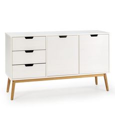 Buffet Baku 3 tiroir y 2 porte blanc, pin massif, longueur 140 cm