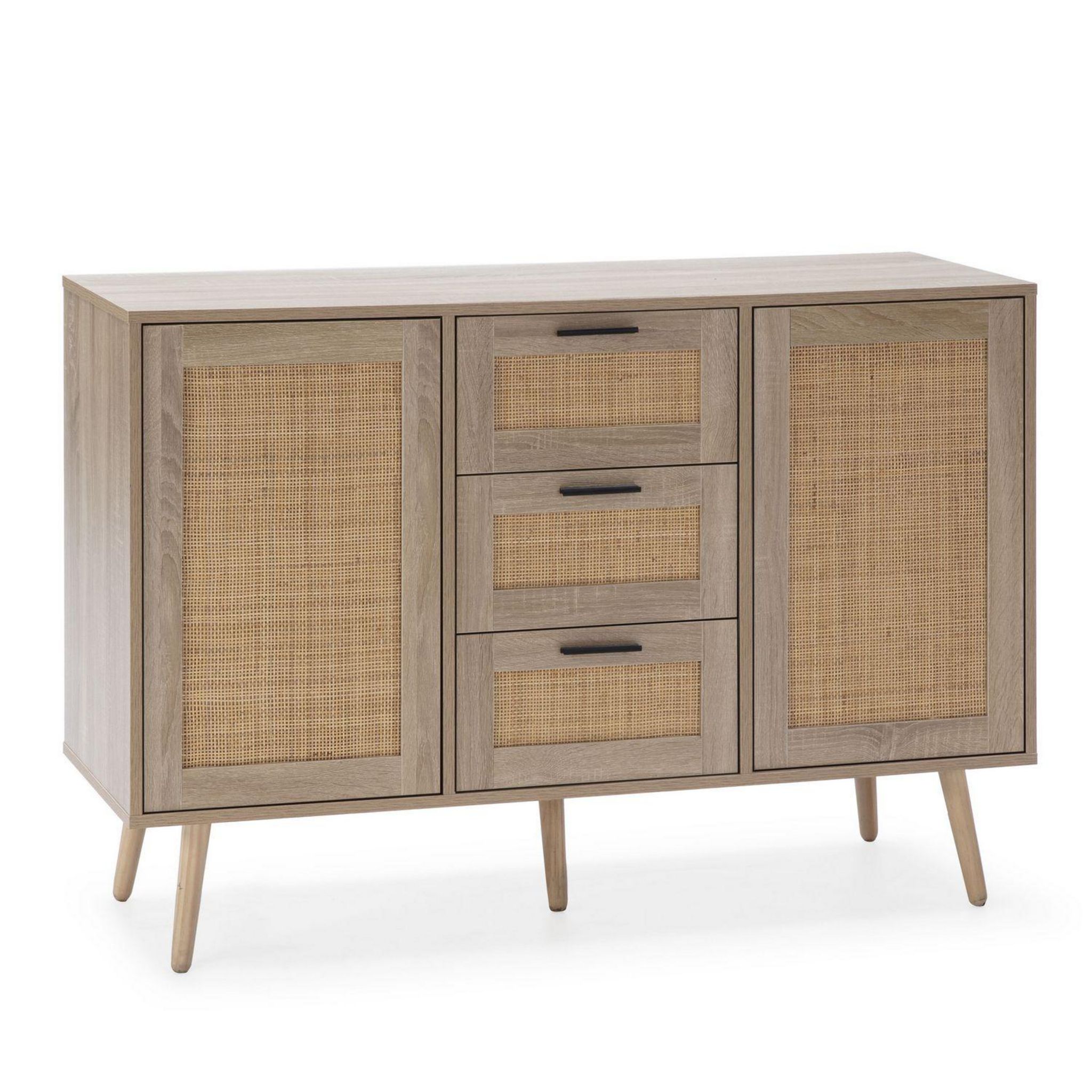 Buffet Dalia 3 tiroirs et 2 portes couleur chêne, 120 cm longueur
