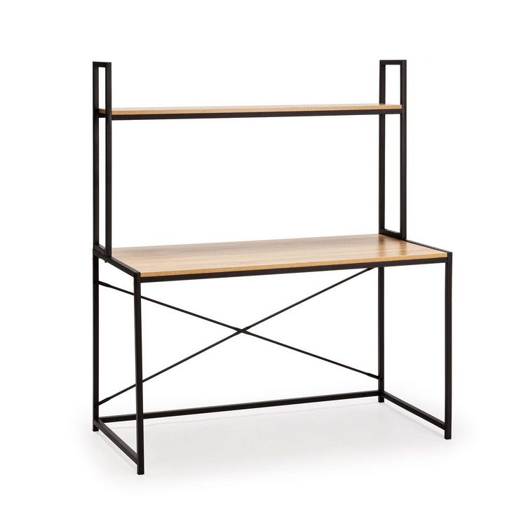 ·, Panneau fabriqué avec des particules E1 standard et un placage mélaminé. Structure métallique noire mate en acier. Cette composition rend le bureau Carmen résistant aux rayures et à l'usure, porteur et durable.