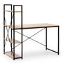 Bureau Lidia noir, 3 étagères, style industriel, 120 cm longueur