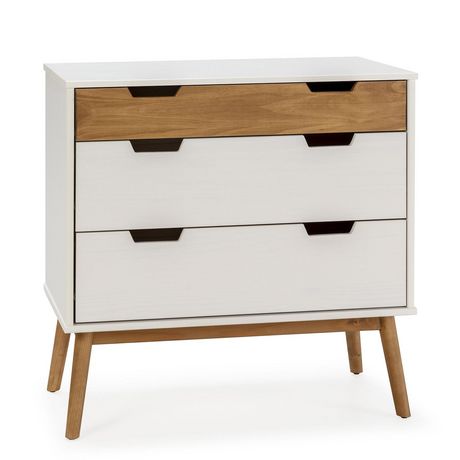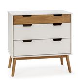 Commode Baku 3 tiroirs couleur blanc/bois, 80 cm longueur