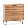 Commode de nuit Alma 3 tiroirs, coloris bois, pieds métal
